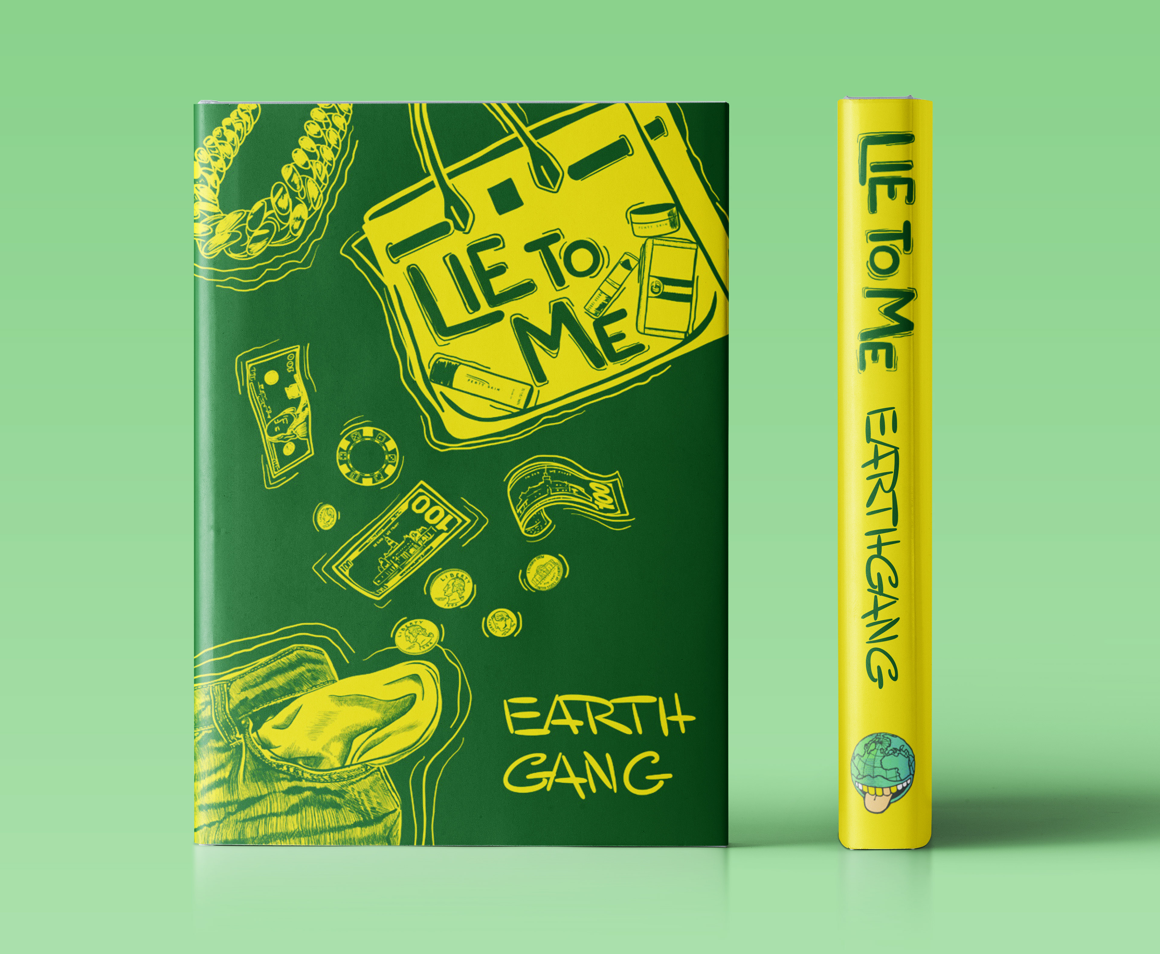 For this project, I did a book cover jacket, inside pages, and marketing collateral for the song Lie To Me by Earthgang. The song talks about the false importance of materialistic items. It speaks about how nobody real exists anymore and it’s all about buying and wearing the most expensive brands in order to keep appearances. People exploit their bodies for money, chase social media engagement, and fall into gambling addictions, all in a desperate attempt to appear wealthy.